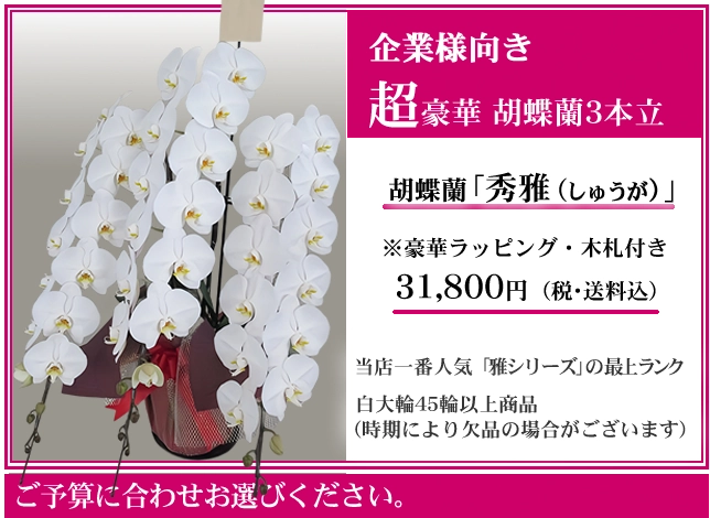 お届け地域が限定されますが、超特急シリーズの「胡蝶蘭 超特急 松」をお選びください。